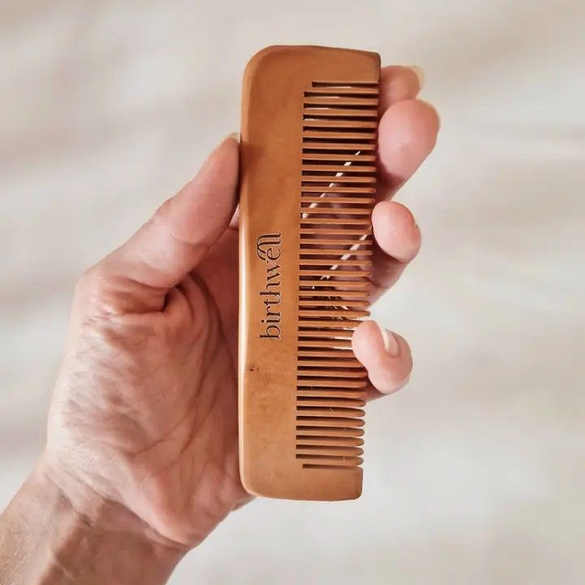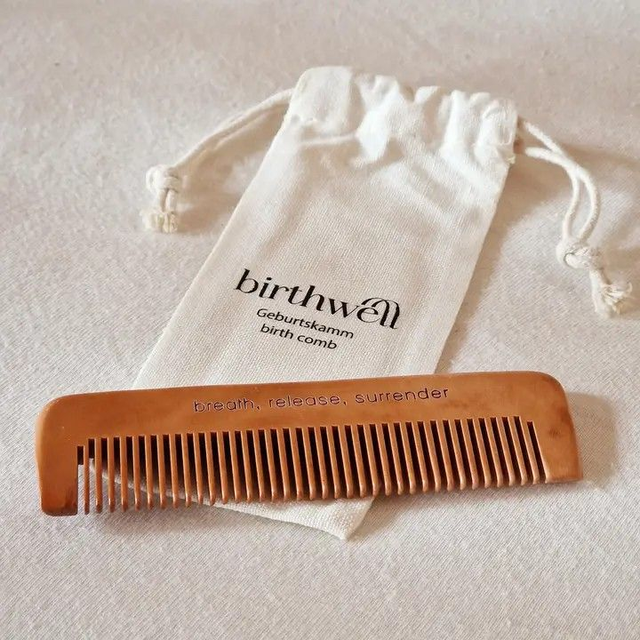 Stabiler Gebutskamm aus Holz für aktives Schmerzmanagement, der sich nicht verbiegt, egal wie fest du drückst. Wie benutzt man den Geburtskamm? Nimm den Kamm so in deine Hand, dass die Zähne in deiner Handfläche liegen. Wenn eine Wehe kommt, drücke ihn so fest zusammen, wie es sich gut für dich anfühlt. Wie hilft mir der Kamm bei Wehenschmerzen? 1. Ablenkung Eine Studie aus 2017 hat gezeigt, dass eine Ablenkung vom Wehenschmerz hin zu einem anderen (deutlich schwächeren) Schmerz das Geburtserlebnis signifikant verbessern kann. Dein Schmerzempfinden und Stresslevel wird reduziert. 2. Akupressur In der Hand befinden sich wichtige Akupressurpunkte. Die relevanten Punkte für die Geburt sind die, wo deine Finger in deinen Handteller übergehen. 3. Gate-Control-Theory Diese Theorie aus dem Jahr 1965 besagt, dass die Rezeptoren im Gehirn nur eine bestimmte Anzahl an Schmerzreizen gleichzeitig wahrnehmen können.