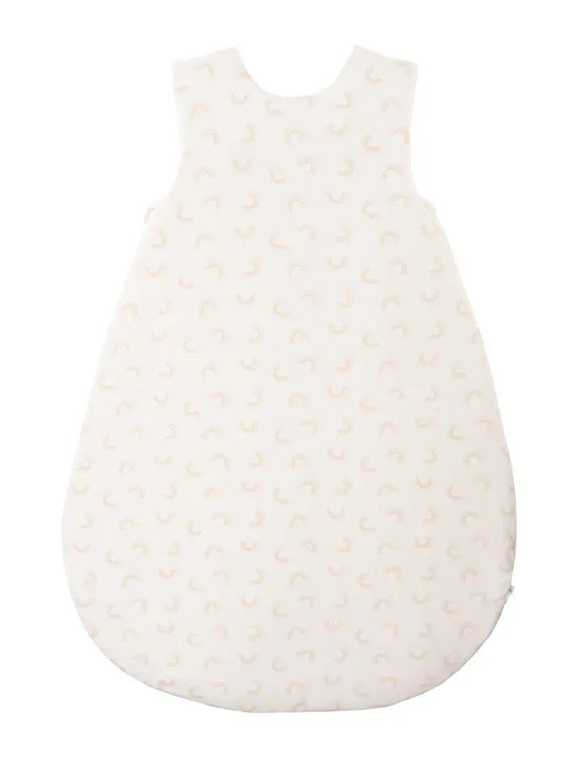 Babyschlafsack mit niedlichem Regenbogen-Print und kleiner Regenbogen Stickerei. Der weiche Schlafsack ist mit praktischen Knöpfen an der Schulter ausgestattet, mit denen der Halsausschnitt je nach Bedarf justierbar ist. Der seitliche Reißverschluss erleichtert das An- und Ausziehen. Der Schlafsack spendet das ganze Jahr über Wärme und Geborgenheit. Das Außenmaterial sowie das Futter bestehen aus reiner, schadstoffgeprüfter Baumwolle. Außen- und Innenmaterial aus 100% Baumwolle Wattierung aus 100% Polyester waschbar bis 40°, trocknergeeignet