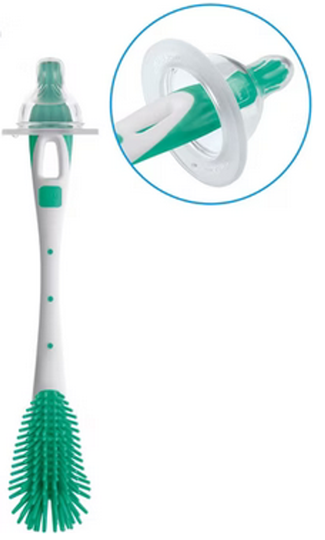 Flaschen- und Saugerbürste mit extra weichen und kratzfreien Borsten. Dank der innovativen Borsten ist die Reinigung von Babyflaschen ganz einfach. Sie passen sich flexibel an alle MAM- und andere Babyflaschen an. Das grosse Loch ermöglicht eine hängende Trocknung, was die sichere und hygienische Aufbewahrung erleichtert. Die weiche Saugerbürste mit strukturierter Oberfläche reinigt den Sauger auch an schwer erreichbaren Stellen, insbesondere auf der Innenseite. Die spezielle Form ist ideal für MAM-Sauger geeignet. Die Bürste ist spülmaschinenfest.