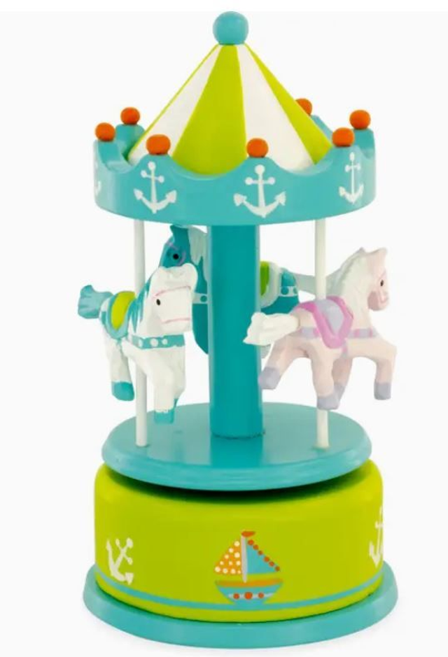 Entdecken Sie unser wunderbares Musikkarussell aus Holz, ein zeitloses Spielzeug, das Groß und Klein gleichermaßen in Erstaunen versetzen wird. Er ist mit einem manuellen Hebemechanismus ausgestattet und ermöglicht es Ihnen, die bezaubernde Melodie des berühmten Liedes „Die schöne blaue Donau“ von Johann Strauss zu genießen. Drehen Sie einfach die Oberseite des Karussells im Uhrzeigersinn und schon drehen sich die 3 elegant geschmückten Pferde anmutig im Takt der Musik. Mit Sorgfalt aus hochwertigem Holz gefertigt, ist unser Karussell nicht nur ein lustiges Spielzeug, sondern auch ein wunderschönes Dekorationsobjekt für ein Kinderzimmer. Wir haben uns auch für die Umwelt entschieden, indem wir uns für Kraftkartonverpackungen ohne Kunststofffolienbeschichtung entschieden haben. Machen Sie Ihren Kindern mit diesem hölzernen Musikkarussell ein magisches und bleibendes Geschenk.