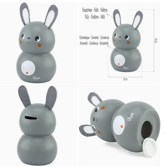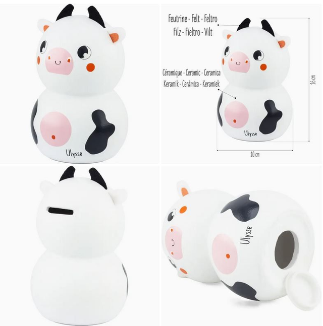 ⦁ Sparschwein aus Keramik: Ein entzückendes Sparschwein in Form einer KUH, HASE, oder IGEL aus hochwertiger Keramik, das dem Sparen eine lustige Note verleiht. ⦁ Ohren und Hörner aus Filz: Die weichen, taktilen Details der Filzohren und Hörner sorgen für ein realistisches Aussehen und sorgen gleichzeitig für Sicherheit, ideal für kleine Sparer. ⦁ Hinterer Schlitz: erleichtert das Einzahlen von Münzen und ermutigt Kinder, schon in jungen Jahren gesunde Spargewohnheiten zu entwickeln. ⦁ Kork an der Basis: ermöglicht einen einfachen Zugang zu Ersparnissen und fördert die Planung und das Erreichen finanzieller Ziele. ⦁ Umweltfreundliche Verpackung: Wird in einer Kraftkartonverpackung ohne Kunststofflaminierung geliefert, was unser Engagement für Nachhaltigkeit und Umwelt unterstreicht.