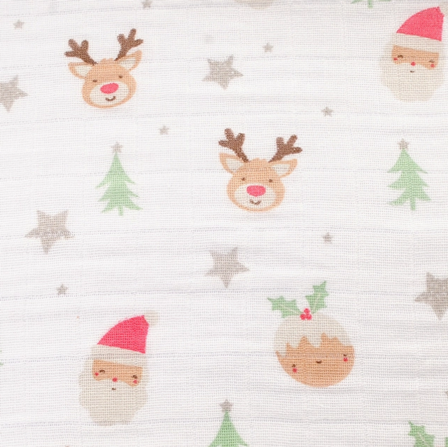 Schlitten Sie dieses Weihnachten mit unserem superweichen Weihnachts-Musselin! Dekoriert mit Weihnachtsmann und Rentieren, ist unser Musselin das perfekte Weihnachtsaccessoire! Luxuriöses Musselin aus dickem, 100% weichem Baumwollstoff. Wird mit jeder Wäsche weicher. Hochsaugfähig und schnelltrocknend - perfekt für viele Anwendungen. Der beste Freund der Eltern - viele Verwendungsmöglichkeiten, einschließlich Spucktuch, Kuscheldecke, Lätzchen, Pucktuch… die Liste geht weiter! Passt leicht in die Tasche für unterwegs. Groß in der Größe - 80 cm x 80 cm. Verpackt in attraktiver Ziggle-Verpackung - das perfekte Geschenk für einen geliebten Menschen. Farbecht und maschinenwaschbar. Geeignet für den Wäschetrockner. Ein Muss für Ihre Sammlung.